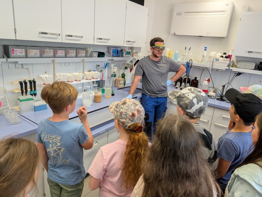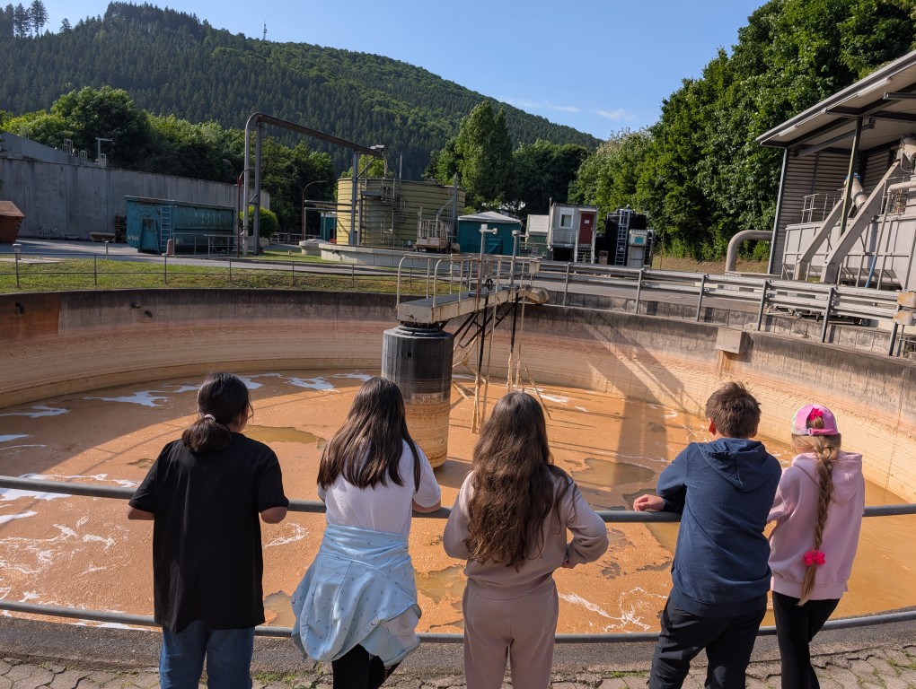 mit diesem Bericht möchten wir Sie auf unsere Reise in die Kläranlage der Firma Gelita mitnehmen. Am 15.5 sind wir von der Schule aus zum Gundelsheimer Bahnhof gelaufen. Wir sind in den Zug nach Neckarelz gestiegen. In Neckarelz angekommen, sind wir in den nächsten Zug nach Eberbach gestiegen. In Eberbach holte uns Lennox Papa mit dem echten SV Sandhausen Mannschaftsbus ab. Sicher hat er uns zur Kläranlage gebracht. Dort hat uns ein Kollege von Lennox Papa die Kläranlage gezeigt. Am Ende durften wir die Geschmäcker von Gummibärchen erraten. Danach sind wir mit dem Mannschaftsbus wieder zum Bahnhof gefahren. Da es eine Gleisänderung gab, mussten wir zum Zug rennen. Doch wir haben den Zug bekommen und sind gut in Gundelsheim angekommen.
